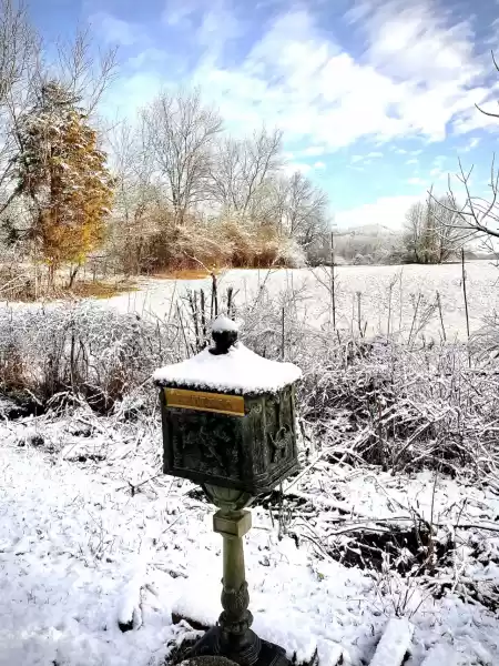 The well-kept surroundings still feature old stonework, including a wellhead and a stone bridge over the headwaters of Hines Creek. Even the station bell is still here.